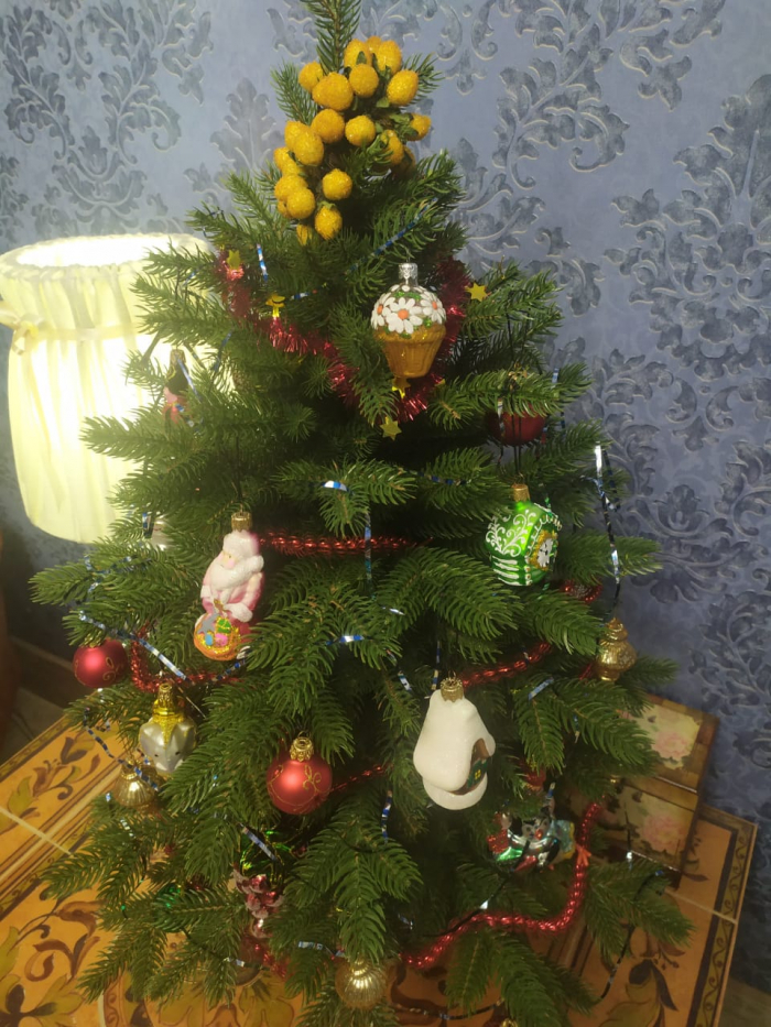 Выглядит как настоящая. Отлично смотрится. Будьте внимательны к выбору размера. Следующий раз возьму 90 см. И, кстати, на более высокой елке игрушки будут лучше смотреться их будет легче подобрать, тоже касается и гирлянд.