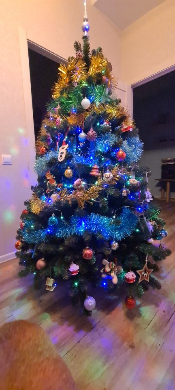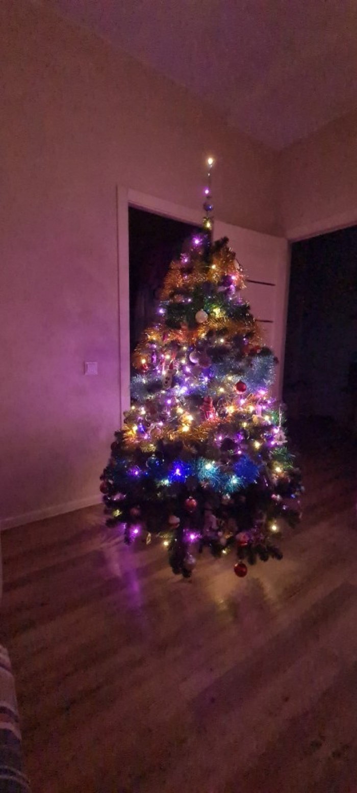 Пушистая, как снежная метель, ёлка будто соткана из лесной дымки. Её хвоя — из мягкого ПВХ, не колючего, а ласкового, будто сшитого из сказочной парчи. Ветви — широкие, густые, роскошно раскидистые, с внушительным нижним диаметром — создают ощущение настоящего лесного исполина, приглашённого в дом.