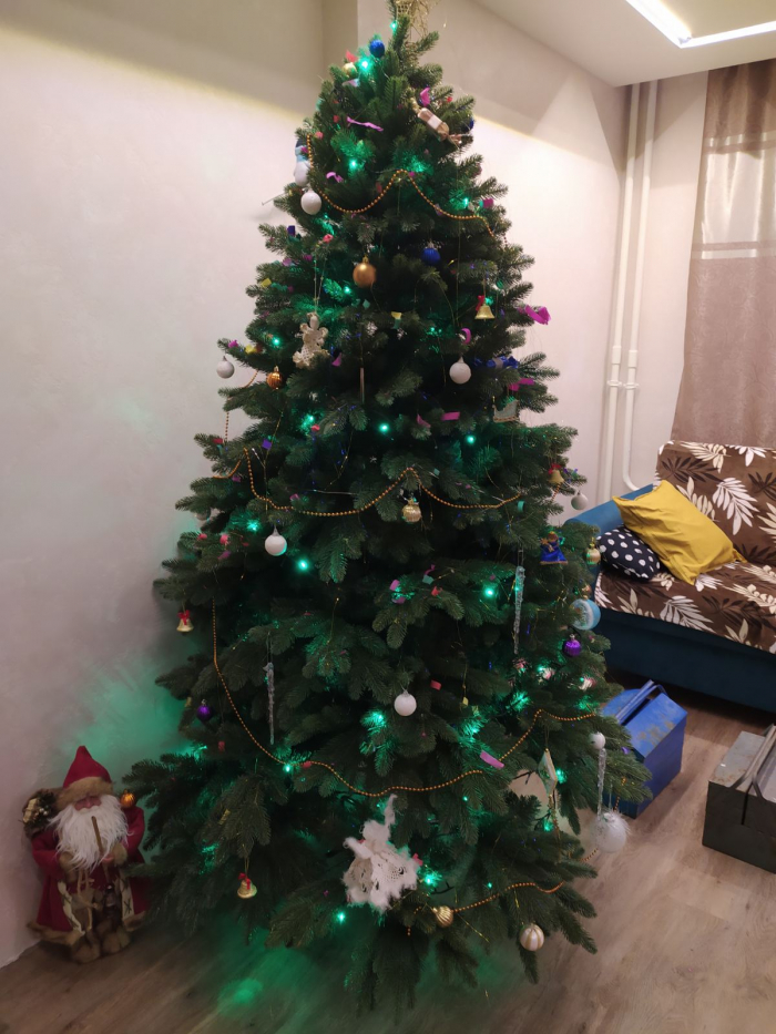 Сборка елки не отнимет много времени - необходимо всего лишь зафиксировать ель на подставке, а ветки уже прикреплены к стволу по принципу "шарнирного крепления", осталось только распушить маленькие отростки (веточки), чтобы придать ей вид как на фото. Елочка упакована в коробке из плотного картона, которую удобно хранить, и которая не занимает много места.