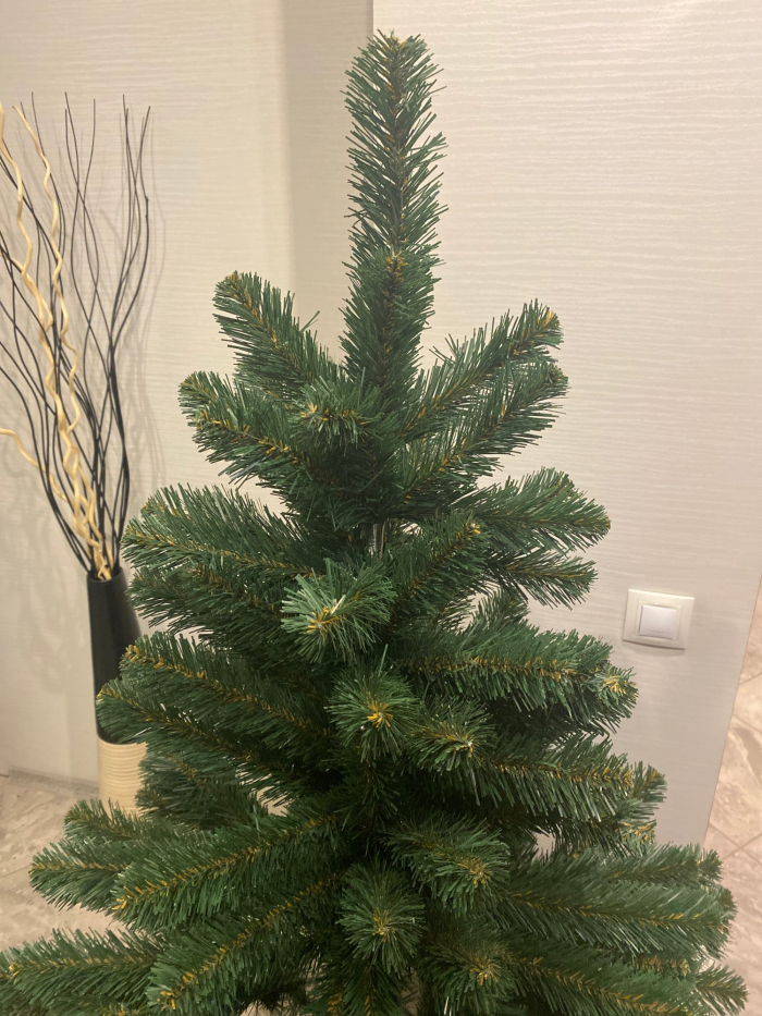 Произведена елка из материалов самого высокого качества. Хвоя создана из полимерной пленки ПВХ. Это мягкая пленка, из нее получаются пушистые похожие на настоящие веточки сосны. Только иголочки на такой сосне совсем не колются и со временем не осыпаются.