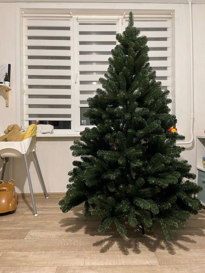 Сборка елки не отнимет много времени. Вам необходимо всего лишь вставить веточки в разъёмы на стволе, согласно цветовой маркировке, расправить их придав елке красивую форму как на фотографии. Елочка упакована в коробке из плотного картона, которую удобно хранить, и которая не занимает много места.