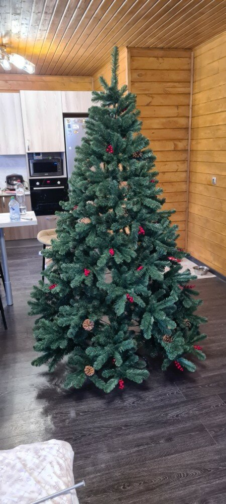 Новый год настолько яркий и долгожданный праздник, что готовиться к нему хочется заранее. Тем более, есть такие вещи, о которых просто необходимо позаботиться накануне. Конечно мы говорим сейчас о новогодней елочке. Искусственная сосна «Новогодняя сказка», украшенная шишками и ягодами принесет в Ваш дом настоящее чудо. Она выглядит так роскошно, что Вы удивитесь как, преобразится весь дом. Пушистая густая крона, насыщенный зеленый цвет, изумительный внешний вид – это всего лишь небольшая часть достоинств. Елочка очень пушистая и красивая, Ваш праздник пройдет на ура и запомнится Вам и вашим близким.