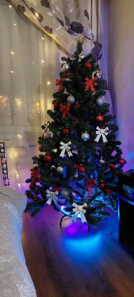 Сборка елки не отнимет много времени. Вам необходимо всего лишь вставить веточки в разъёмы на стволе, согласно цветовой маркировке, расправить их придав елке красивую форму как на фотографии. Елочка упакована в коробке из плотного картона, которую удобно хранить, и которая не занимает много места.