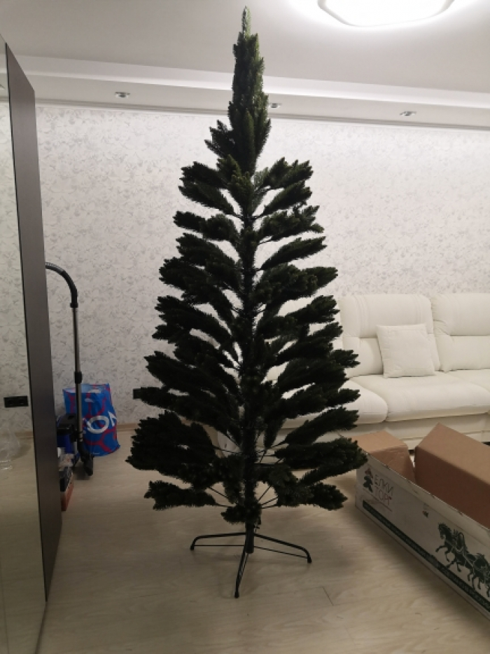 Ёлочку доставили быстро. Собирается легко, распушить можно по своему желанию. Подставка мощная, ёлка устойчивая. Котоустойчивая, даже если запрыгнет с разбега.