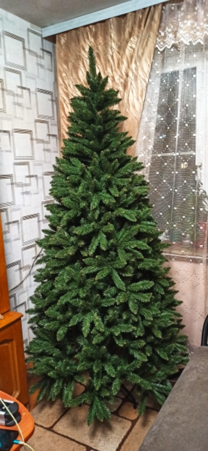 Не думала я, что елочка ПВХ может быть такой красивой) Но... Она чудесная! Пушистая, веточки на шарнирном креплении, кончики веточек подрезаны конусом, как у живой елочки. Практически нет мусора. Надеюсь, прослужит нам долгие годы! Спасибо за отличное качество! Продавца рекомендую.